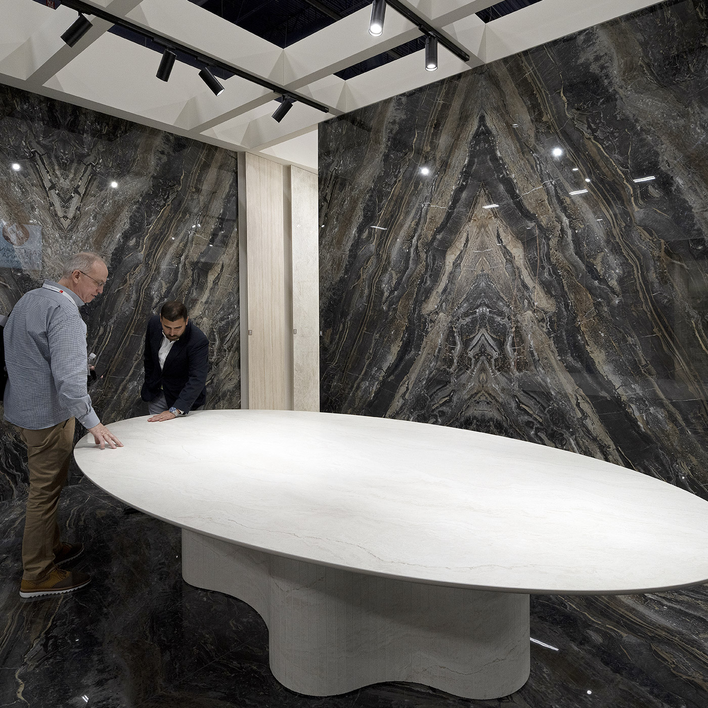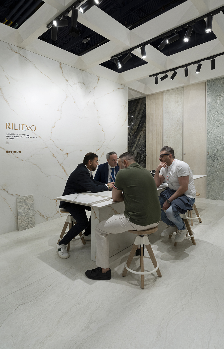 Al Booth 1415, questa visione si traduce in un’installazione che rende immediatamente visibili le possibilità offerte dal nostro formato esclusivo: il tavolo più grande mai realizzato da un’unica lastra in gres porcellanato. Un elemento senza fughe, essenziale nell’immagine e monolitico nella presenza, reso possibile proprio dalle dimensioni uniche delle superfici Optimum.