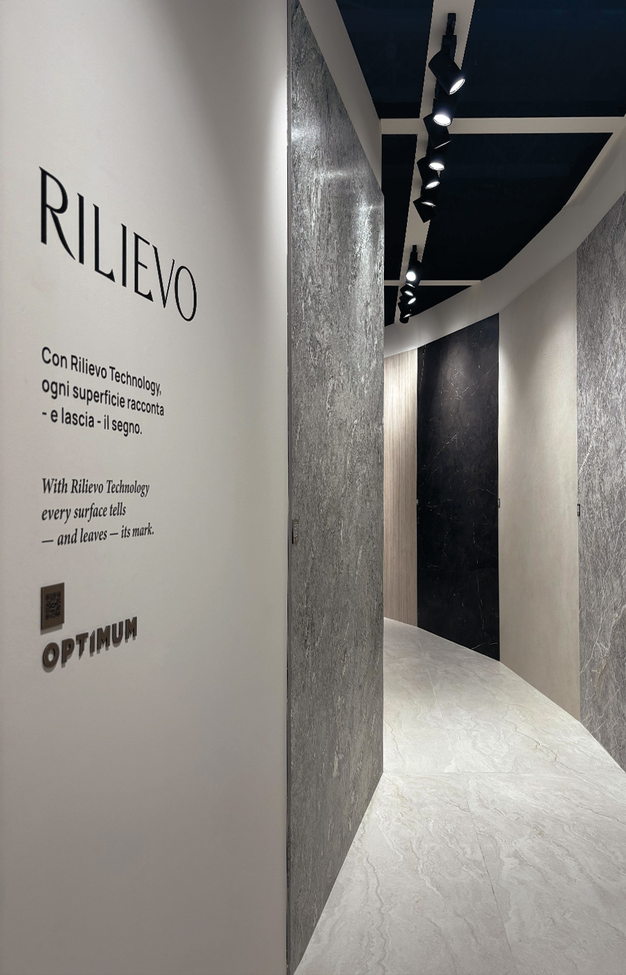 Cersaie segna anche il debutto di Rilievo™, la nuova tecnologia firmata Optimum che, per la prima volta, introduce sulle nostre superfici una finitura tridimensionale con spessori naturali. Un’evoluzione significativa, che arricchisce l’identità estetica dei nostri prodotti con texture ancora più materiche e realistiche, capaci di esprimere tutta la forza della materia. La conferma di un impegno costante nella ricerca e nello sviluppo di soluzioni sempre più evolute.