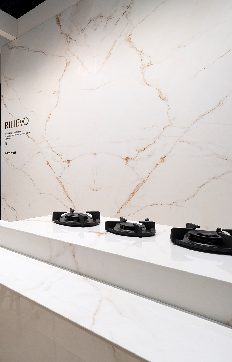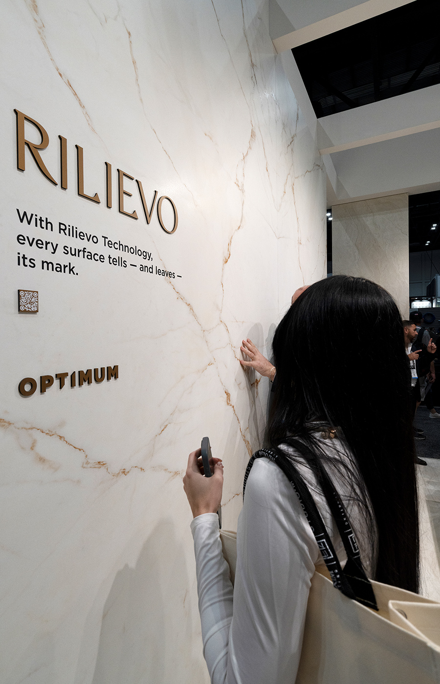 Allo stand Optimum – Booth S24075 presentiamo due installazioni iconiche, realizzate con superfici della nostra gamma, concepite per esprimere in modo chiaro e concreto le possibilità tecniche ed estetiche del nostro grande formato: