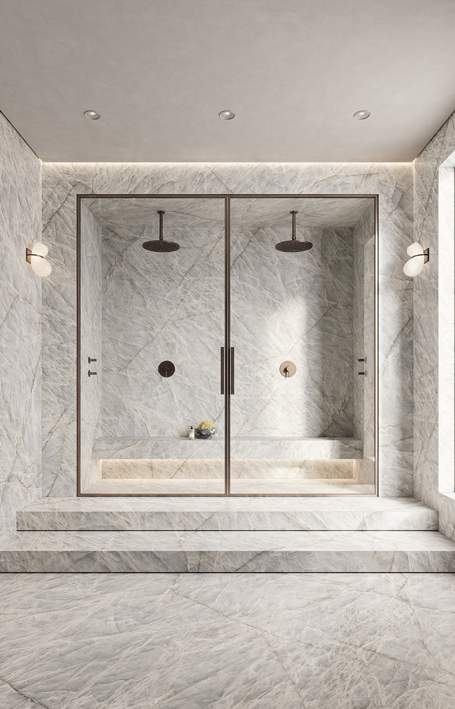 Pensata per interior design, architettura e arredo, Iride interpreta il cristallo come una presenza scenografica capace di definire lo spazio con carattere e intensità. Una superficie effetto ghiaccio che unisce forza visiva e precisione progettuale, trovando espressione massima in top, tavoli, pareti decorative, bagni, cucine e progetti hospitality o retail di fascia alta. A sostenerne il valore progettuale sono il controllo cromatico, la bassa porosità e la facilità di manutenzione.